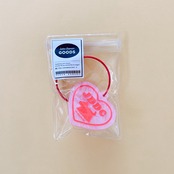マーブルピンクのアクリルにネオンカラーのインクで仕上げています。